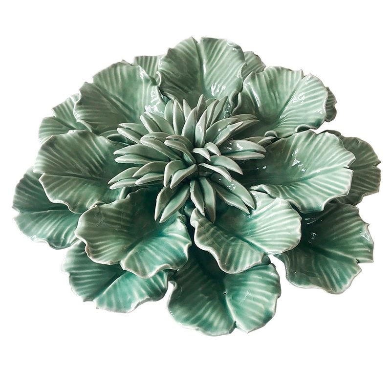 Flor Decorativa De Cerâmica Verde 21x20,7x7,5cm