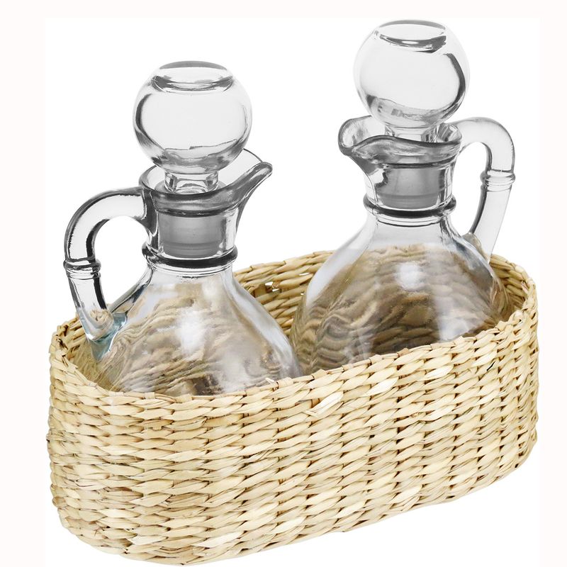 GALHETEIRO CAMPESTRE AZEITE E VINAGRE COM SUPORTE 3 PEÇAS