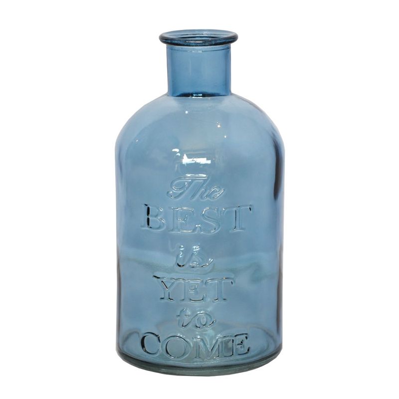 GARRAFA DE VIDRO EMBOSSED PHRASEAZUL 10,3X10,3X20CM