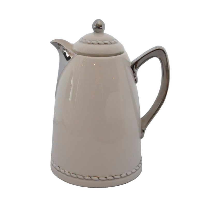 GARRAFA TÉRMICA DE PORCELANA BRANCA E PRATA 19X16X26,5CM
