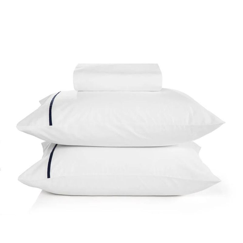 Jogo de Cama 3 Peças Liam Branco Filete Marinho King 180 Fios 1,93M x 2,03M Karsten