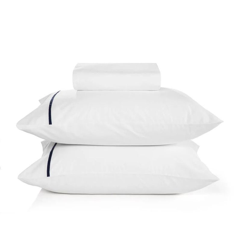 Jogo de Cama 3 Peças Liam Branco Filete Marinho Queen 180 Fios 1,58M x 1,98M Karsten