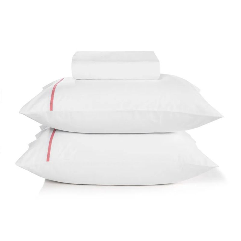 Jogo de Cama 3 Peças Liam Branco Filete Rosa Casal 180 Fios 1,38m x 1,88m Karsten