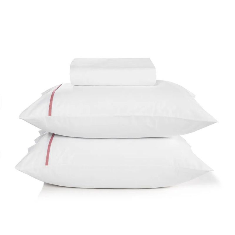 Jogo de Cama 3 Peças Liam Branco Filete Rosa King 180 Fios 1,93m x 2,03m Karsten