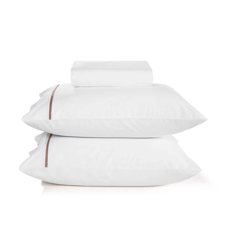 Jogo de Cama 3 Peças Liam Branco Filete Taupe Queen 180 Fios 1,58m x 1,98m Karsten
