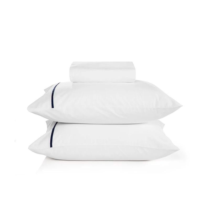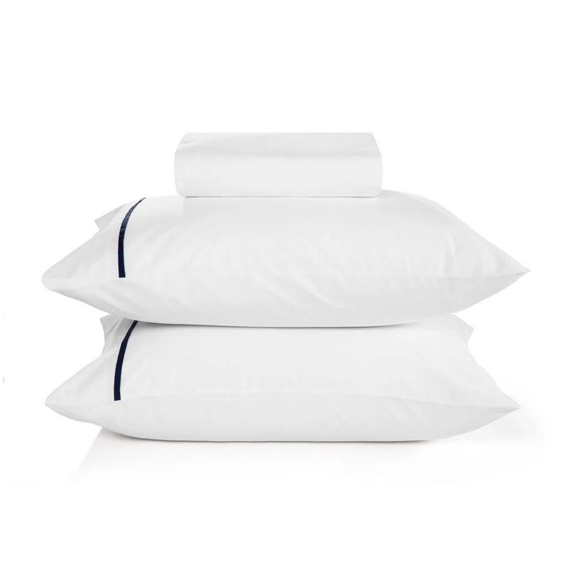 Jogo De Cama Casal Liam Branco Com Filete Marinho 180 Fios Karsten