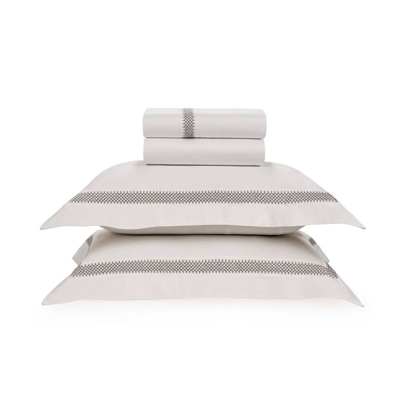 Jogo de Cama King Donati Branco/Ardósia 300 Fios Cetim 100% Algodão Egípcio Trussardi