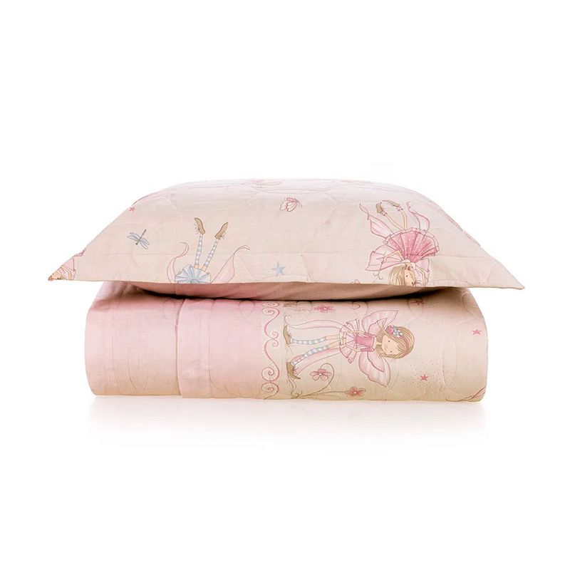 Jogo de Colcha com 1 Porta Travesseiro Solteiro Fadas Infantil 180 Fios Percal 100% Algodão Karsten