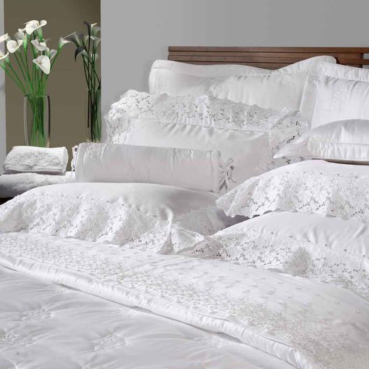 Jogo De Colcha King Elegance Branca 400 Fios Marken Fassi
