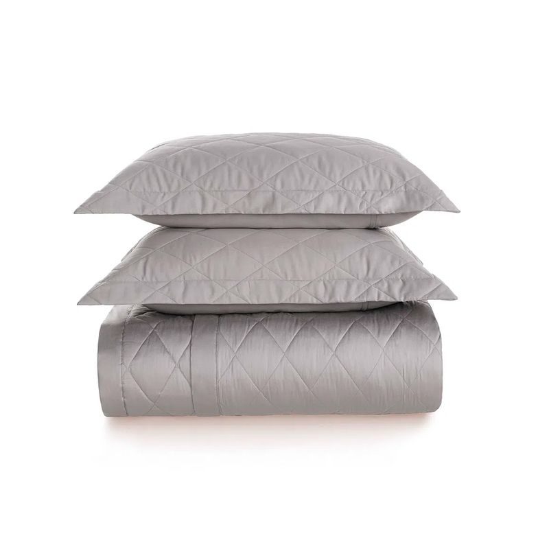 Jogo De Colcha Queen Domos Cinza Com 2 Porta Travesseiros 270 Fios Cetim 100% Algodão Karsten