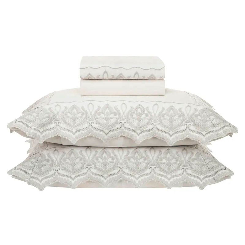 Jogo De Lençol Baronessa King Branco E Platino 280x280cm