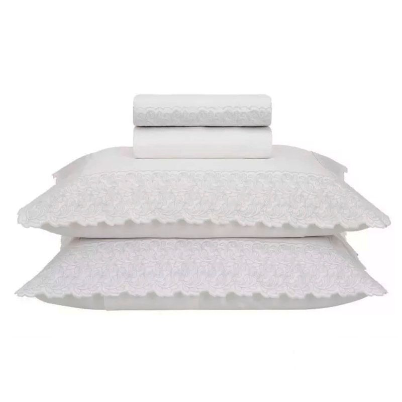 JOGO DE LENÇOL BERGAMO QUEEN 600 FIOS BRANCO E PLATINO 240X280CM