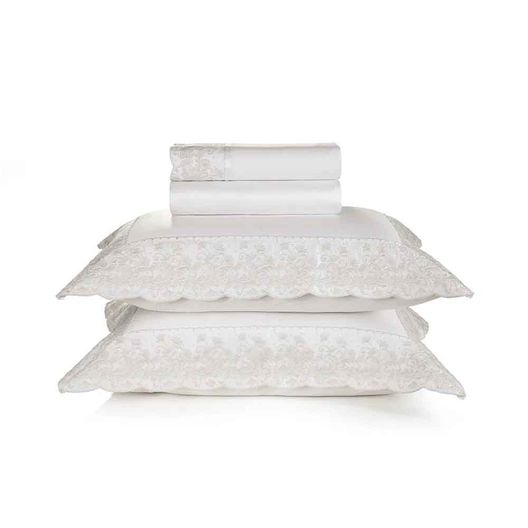 Jogo de Lençol King Torrigiani 600 Fios Branco 280x280cm Trussardi