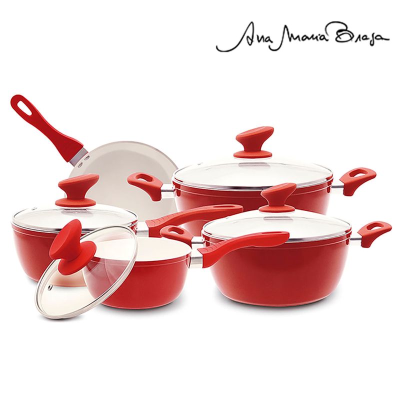 JOGO DE PANELAS ANA MARIA BRAGA COM REVESTIMENTO CERÂMICO 5 PEÇAS VERMELHO