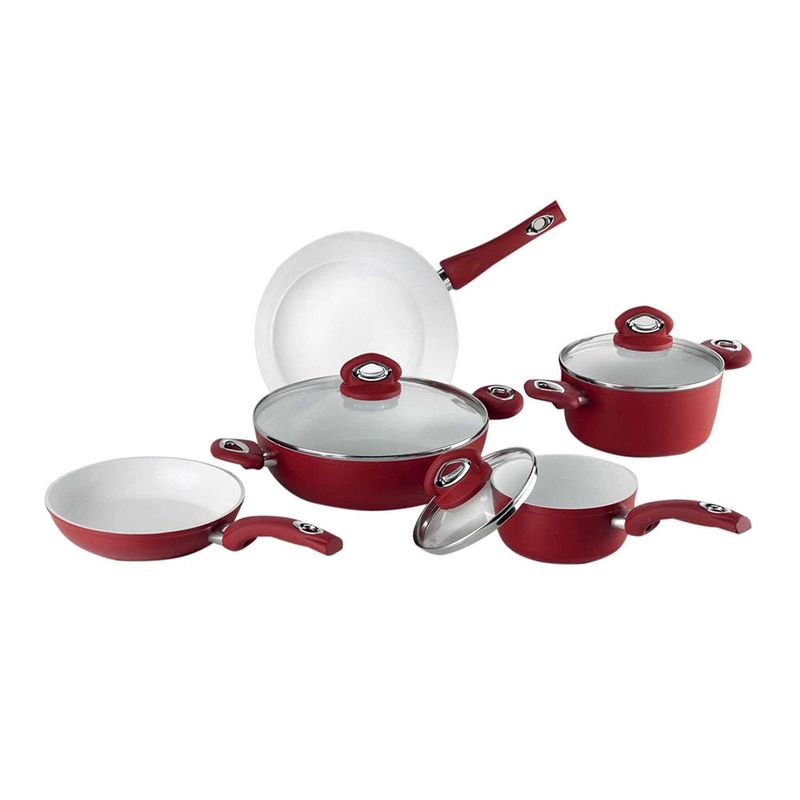 JOGO DE PANELAS BIALETTI EM ALUMÍNIO E CERÂMICA 5 PEÇAS VERMELHO