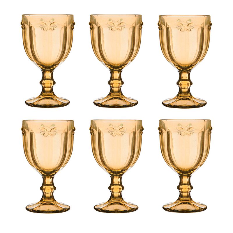 JOGO DE TAÇAS PARA ÁGUA 6 PEÇAS AMBAR BORBOLETA 300ML
