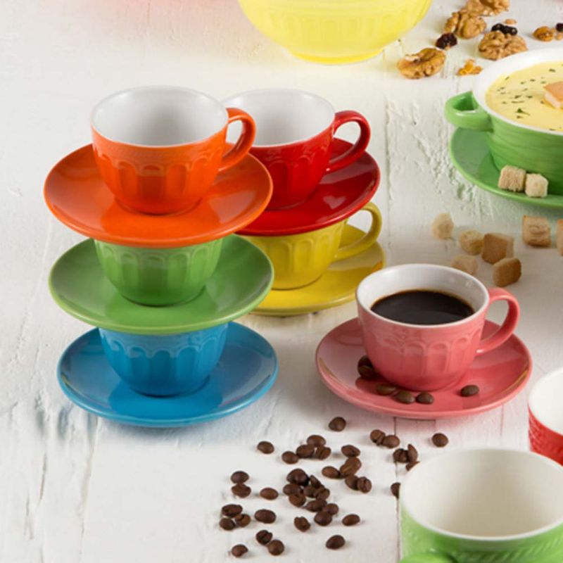 Jogo De Xícaras Café Coloridas Mary 6 Peças 90ml