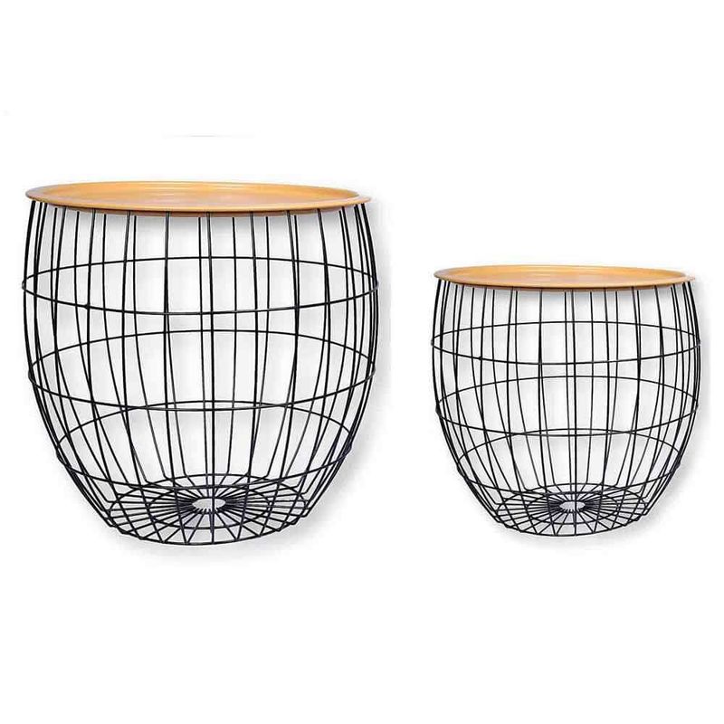 Jogo Mesa Lateral Stacy Preto E Amarelo 2 Peças