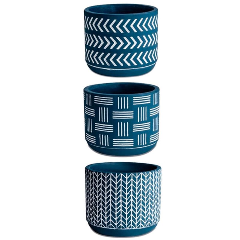 KIT CACHEPOT AZUL E BRANCO EM CIMENTO 3 PEÇAS