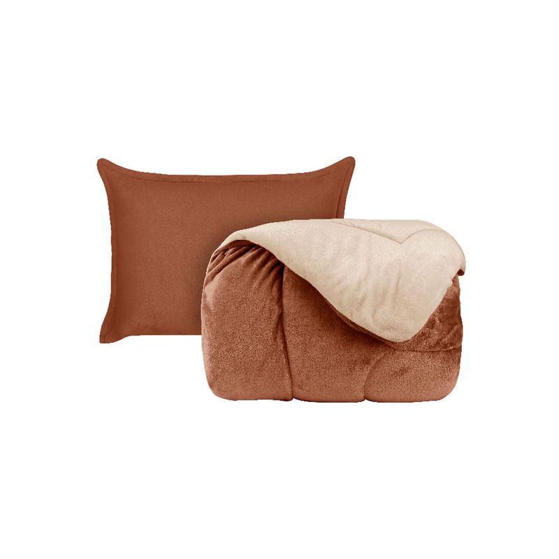 Kit Coberdrom Queen Conhaque e Fendi 2,60m X 2,40m Doppio