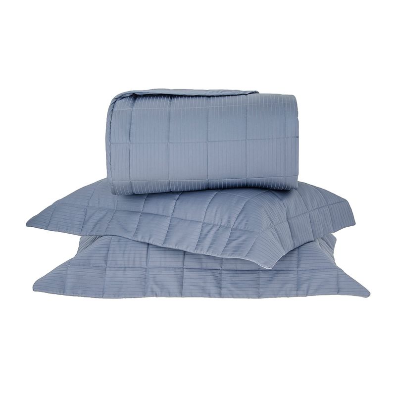 Kit Colcha King Damask Stripes Azul 3 Peças 2,9x2,5m