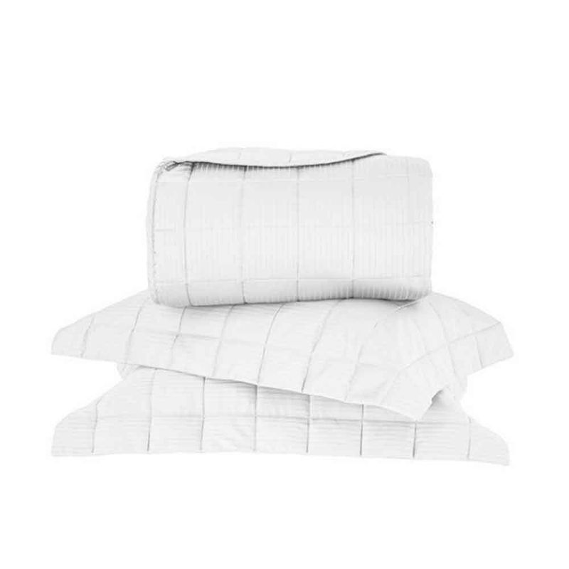 Kit Colcha King Damask Stripes Buddemeyer 300 Fios Branca 3 peças
