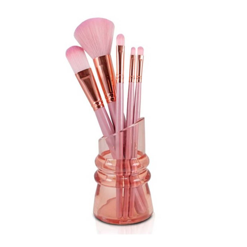 KIT DE 5 PINCÉIS COM SUPORTE ROSA