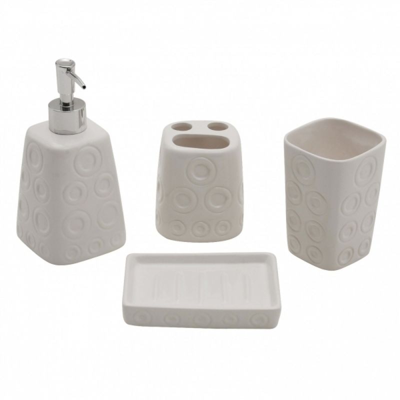 Kit De Banheiro Com 4 Peças Em Cerâmica Branca Círculos