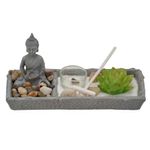 Kit Jardim Zen Decorativo Em Resina Na Cor Cinza