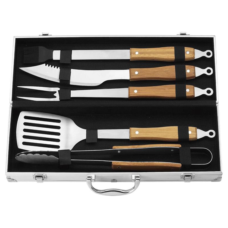 KIT PARA CHURRASCO 5 PEÇAS EM CAIXA DE ALUMÍNIO