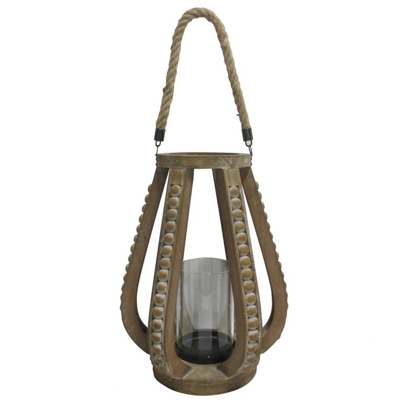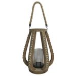 Lanterna Em Corda, Vidro E Madeira Marrom 28,5x28,5x37cm