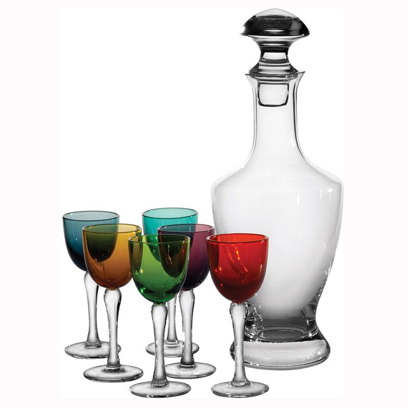 LICOREIRA COM TAÇAS DE LICOR DROPS COLORIDAS 7 PEÇAS