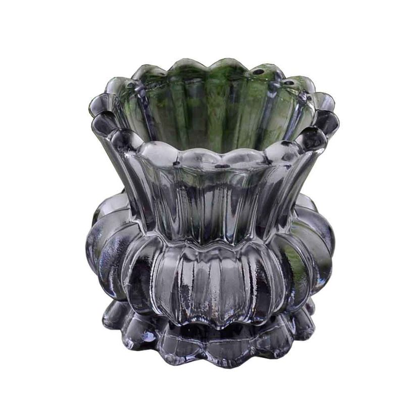 Mini Castiçal Em Vidro Azul Acinzentado 8x8cm