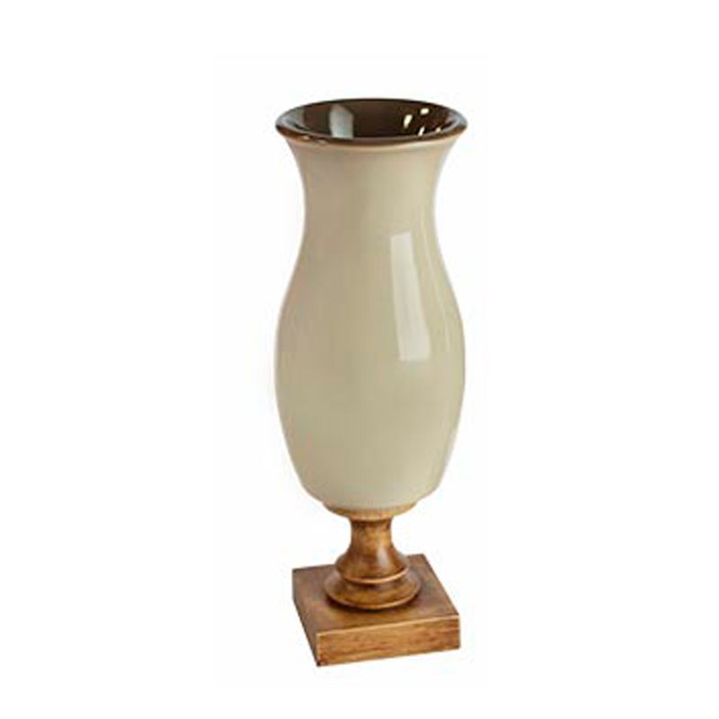 PEÇA DECORATIVA DE CERÂMICA E MADEIRA 17X47CM
