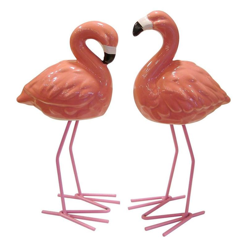 Peça Decorativa Flamingos 17cm Jogo Com 2 Peças Fg-14 The Home