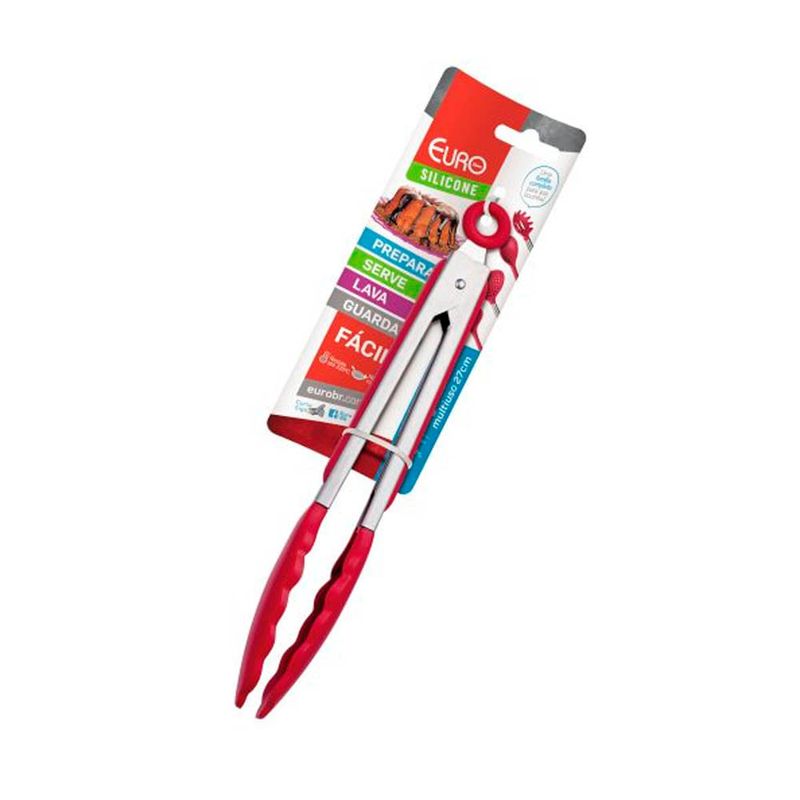 PEGADOR MULTIUSO DE SILICONE COM CABO INOX 27 CM VERMELHO
