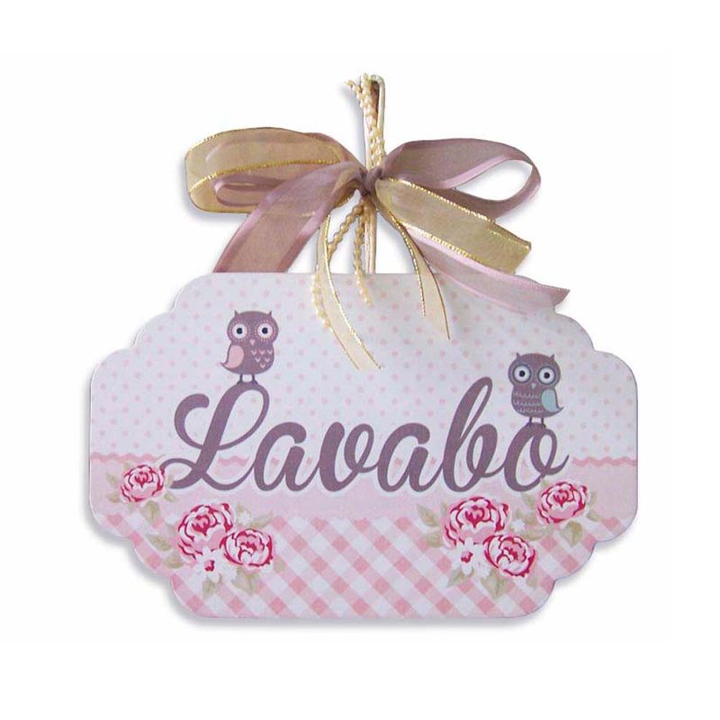 Placa Em Mdf Digital Lavabo Corujas 19x11,5cm