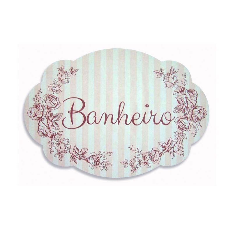 PLACA EM MDF DIGITAL ROSA COM LISTRAS BANHEIRO 29X20CM