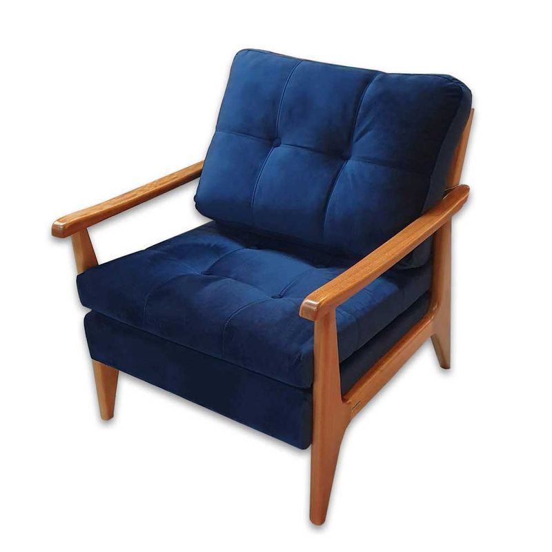 Poltrona Anita Veludo Azul E Madeira Freijó Braier