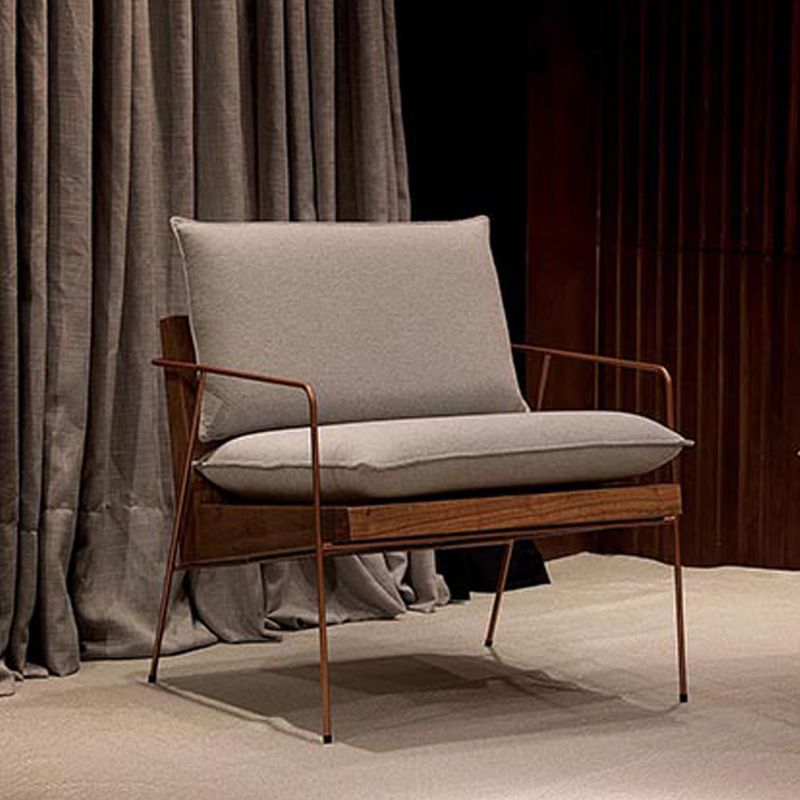 Poltrona Giovanna Cinza Base Em Aço Cobre Com Detalhes Em Madeira Nolan Collection