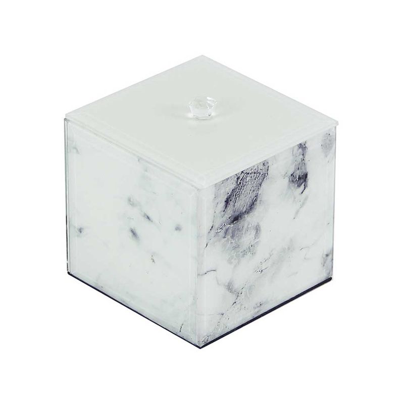 Porta Algodão Em Madeira E Vidro Branco 11,5x10cm