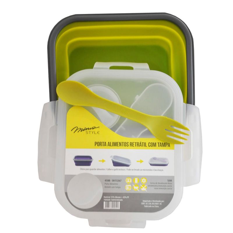 PORTA ALIMENTOS RETRÁTIL COM TAMPA VERDE