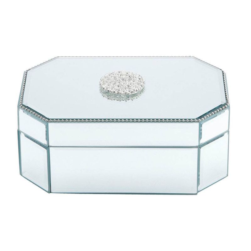 PORTA JÓIAS COM BRASÃO DE METAL ESPELHADO 19,5X13X8CM