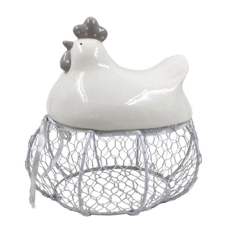 PORTA OVOS DE CERÂMICA E METAL GALINHA CUTE BRANCO E CINZA