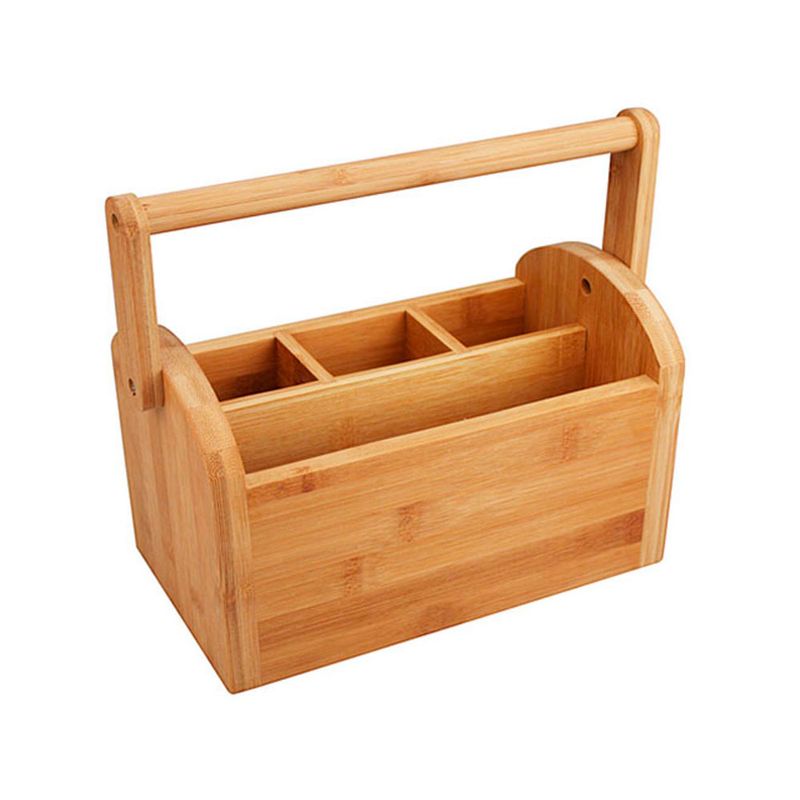 PORTA TALHERES DE BAMBU COM 4 DIVISÓRIAS 25,5X25X12,5CM
