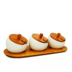 Porta Temperos 03 Potes Com Tampa E Colher Bambu Tyft