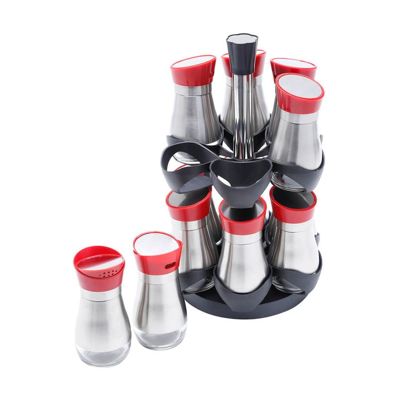 PORTA TEMPEROS DE AÇO INOX E VIDRO BOUNCE 13 PEÇAS 19X19X29CM