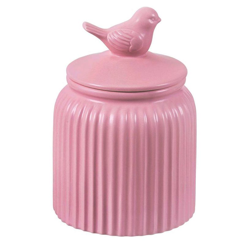 Pote Cerâmica Bird Lid Rosa Grande 14x14x21cm