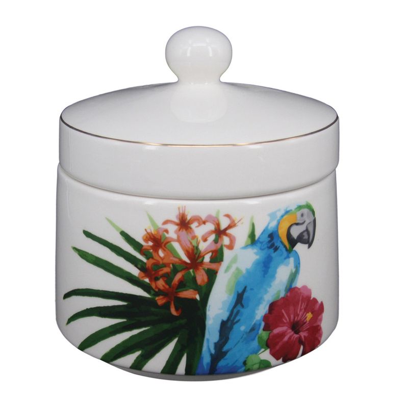 Pote De Cerâmica Arara Com Tampa 15x16,5cm