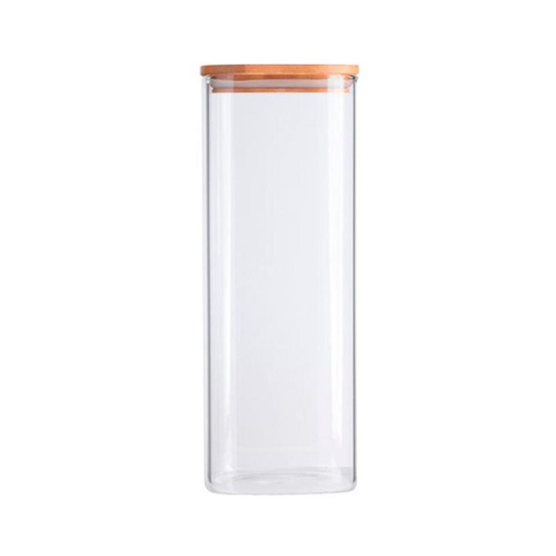 Pote De Mantimentos Vidro Flat Quadrado 1,9L Com Tampa Em Bambu Oikos